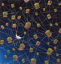 Усилиями других теоретиков постмодернистской философии - таких как Жан Бодрийар, Жиль Делёз, Феликс Гваттари и другие - постмодернизм со временем оформился как специфическое мировоззрение конца XX века. Его главной отличительной чертой является плюрализм, а производными характеристиками - фрагментарность, децентрация, изменчивость, контекстуальность, неопределенность, ирония и симуляция. Ярким воплощением постмодернистских принципов является глобальная компьютерная сеть. В самом деле, во-первых, глобальная сеть - принципиально открытая структура, в которой отсутствует центральный пункт, контролирующий информационные потоки. Во-вторых, соединениями компьютера управляют не клавиатура и не руки, лежащие на ней, а "множественность нервных волокон" пользователя. В-третьих, разветвленная и многоканальная структура глобальной сети делает практически невозможной изоляцию какой-либо ее части, доступ к которой власть сочтет нежелательным. Наконец, в- четвертых, в киберпространстве сети нет фиксированных, неизменных маршрутов, оно не расчерчено линиями проторенных магистралей, напоминая скорее сеть полевых степных дорог, постоянно меняющую свою конфигурацию.